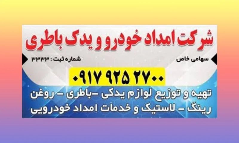 - آدرس: استان بوشهر، برازجان، انتهای خیابان آرامگاه (رحمت) روبروی درب آرامگاه، نبش کوچه 4، شرکت امداد خودرو یدک باتری